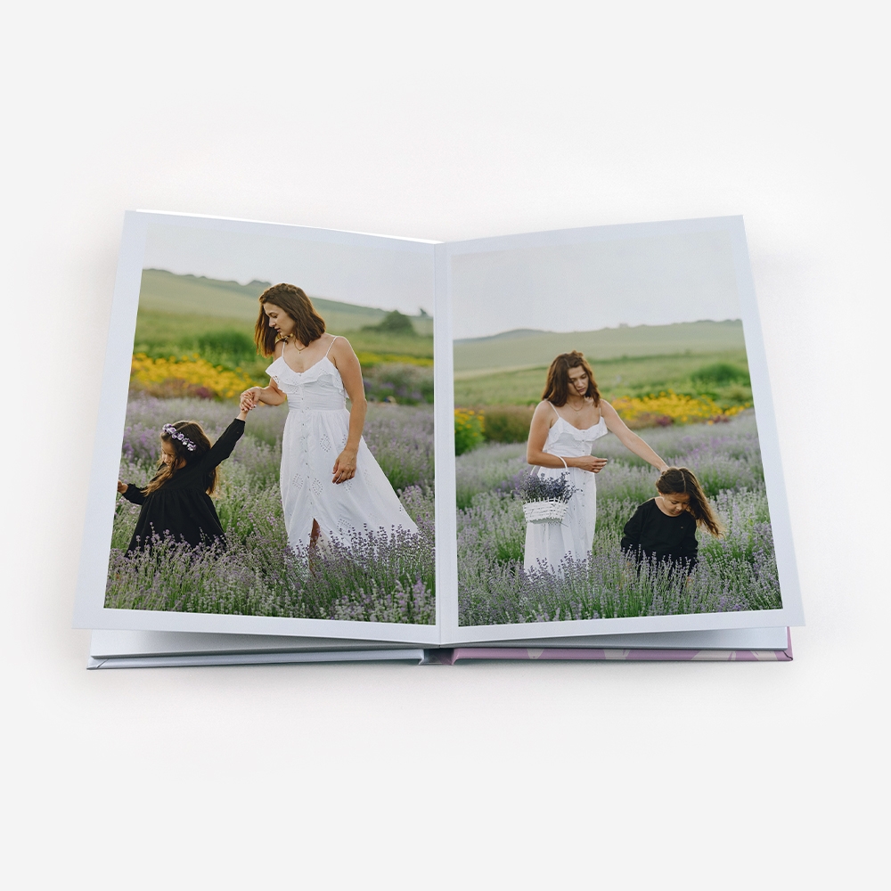Os Álbuns de Fotos Dreambooks apresentam uma abertura panorâmica, com a possibilidade de colocar uma foto em destaque ocupando duas páginas. Dessa forma, desfrutará de uma visualização perfeita das suas fotos, sem cortes ou partes escondidas.